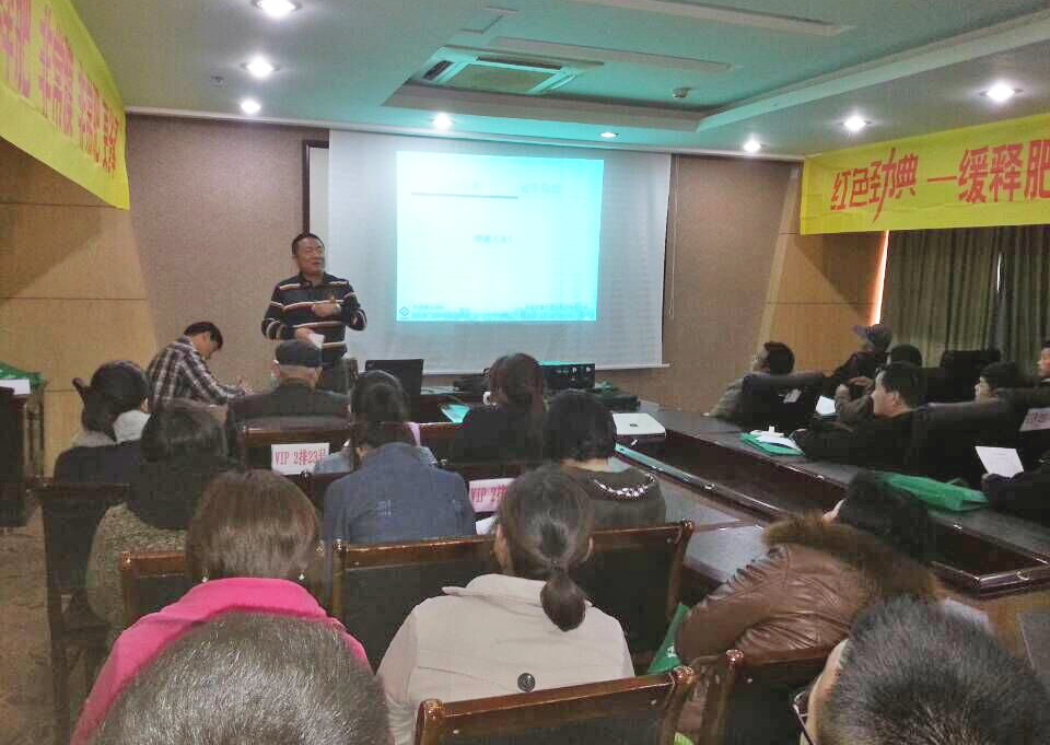 3月27日下午2点钟,“2015年萧县市场樱桃视频大全免费缓释肥推广会” 在萧县凤山国际大酒店顺利召开。会上邀请当地樱桃视频大全免费缓释肥经销商、以及合作社、种植大户等重要客户到场。